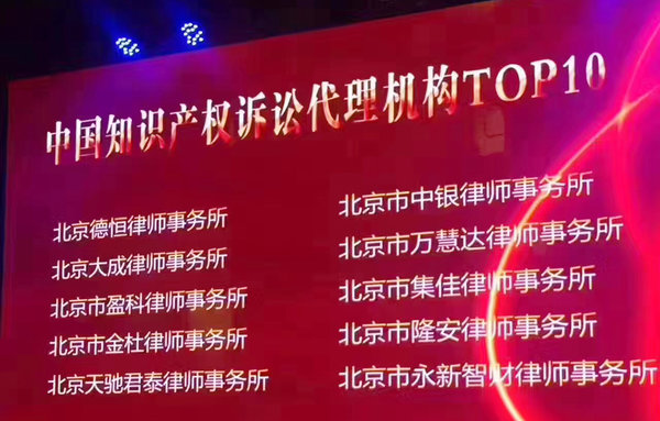 >开云>关于我们>荣誉概览>2017>荣登2016年度中国十佳知识产权诉讼代理机构排行榜