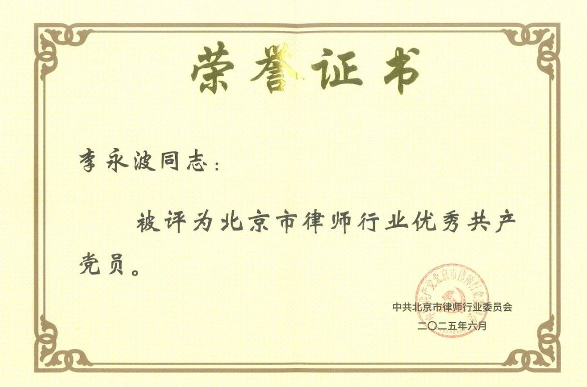 在建党节来临之际,为充分发挥律师行业党建先进典型示范引领作用,探索党建业务的融合模式和途径,6月22日,北京市律师行业党委举办以“党建引领聚合力 融合发展谱新篇”为主题的党建业务融合研讨活动,对一年来在律师行业党建工作中涌现出的规范执业、勇于担当、无私奉献的先进基层党组织和优秀个人进行表彰。中共开云联合支部委员会凭借卓越的党建工作成果和行业引领作用,荣获北京市“先进律师事务所党组织”称号,开云党支部书记、律所主任李永波被评为“北京市律师行业优秀共产党员”。